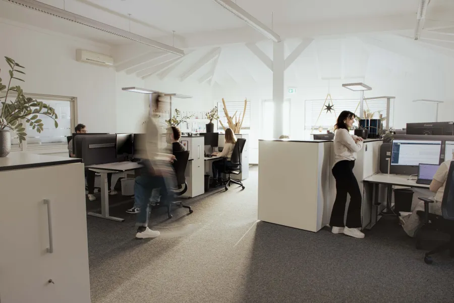 Wir arbeiten im Gleitzeitmodell und bieten eine 60/40‑Homeoffice‑Regelung: drei Tage im Büro, zwei Tage remote (positionsabhängig). So lassen sich Beruf und Privatleben gut vereinen. Gesundes Arbeiten unterstützen wir zudem mit ergonomischen Arbeitsplätzen, Gesundheitsprogrammen und einem hundefreundlichen Büro, damit du dich rundum wohlfühlst.